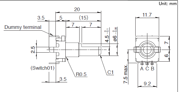 操作部长度: 15mm