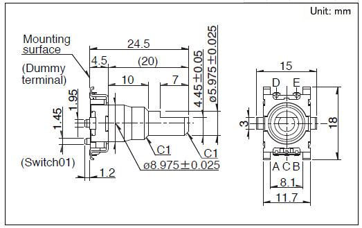 11.7x15.3x4.5 11型金属轴型备有小型·高可靠性,种种各样的种类。