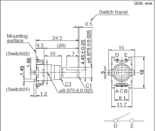 11.7x15.3x4.5 11型金属轴型备有小型·高可靠性,种种各样的种类。