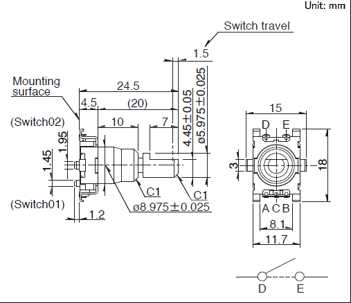 11.7x15.3x4.5 11型金属轴型备有小型·高可靠性,种种各样的种类。