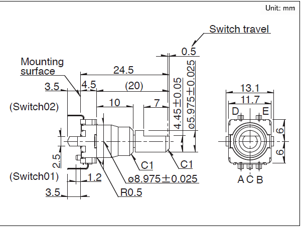 按开开关行程: 0.5mm