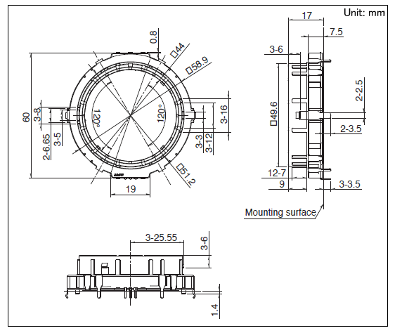 62.4x60x7.5 60型中空轴装置 对应多功效化的大径带空心孔型。