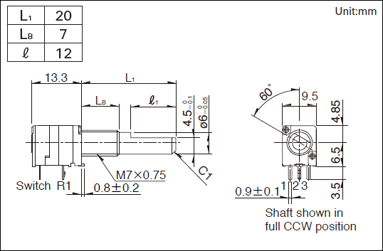1轴带旋转开关型种种控制用,具有广泛用途的9.6mm宽型。