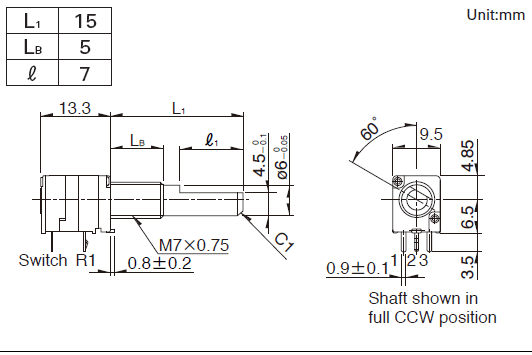 1轴带旋转开关型。种种控制用,具有广泛用途的9.6mm宽型。