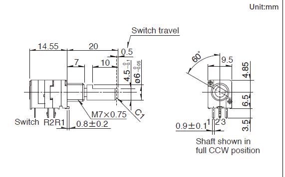 1轴带按开(0.5mm行程)开关型。种种控制用,具有广泛用途的9.12mm宽型。