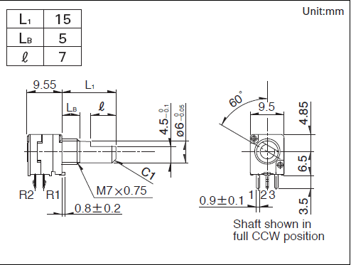 操作部长度: 15mm