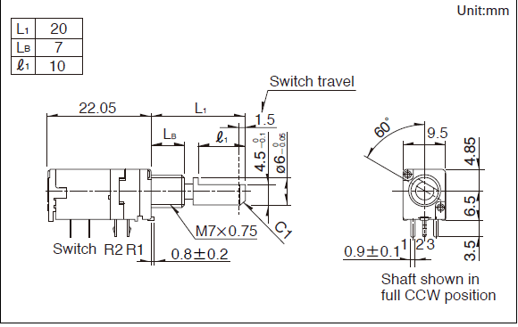 1轴带按开-按关(1.5mm行程)开关型。种种控制用,具有广泛用途的9.16mm宽型。