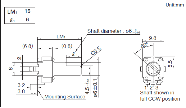 ²Ù×÷²¿³¤¶È LM1: 15mm