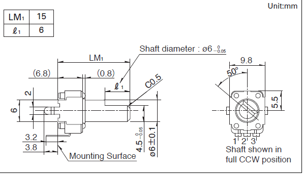 操作部长度 LM1: 15mm
