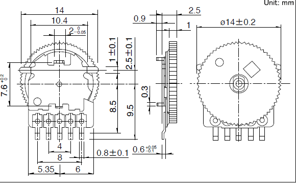 带旋钮型 可应对种种回流焊,浸焊的薄型。