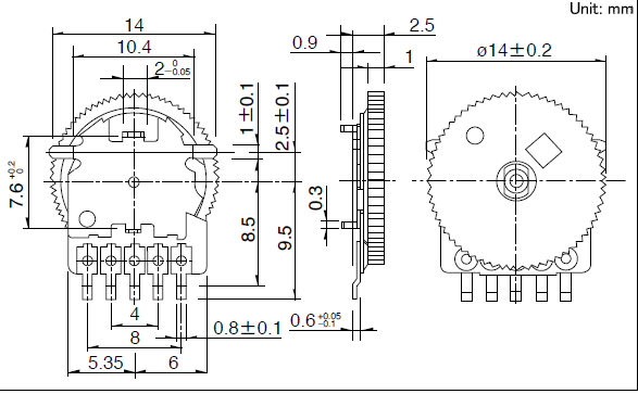 带旋钮型 可应对种种回流焊,浸焊的薄型。