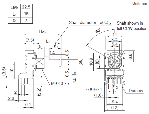 操作部长度 LM1: 22.5mm