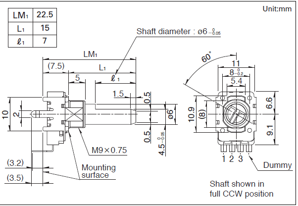 操作部长度 LM1: 22.5mm