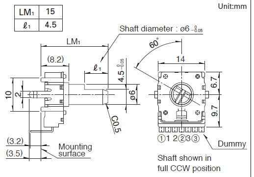 操作部长度: 15mm,中央定位