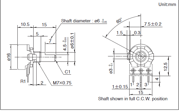 操作不形状: 平轴,端子形状