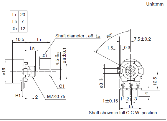 操作不形状: 平轴,端子形状