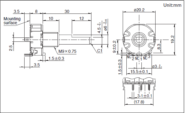 20型金属轴型,能够用相同形状对应电位器/编码器的重扭矩, 触感良好的型号