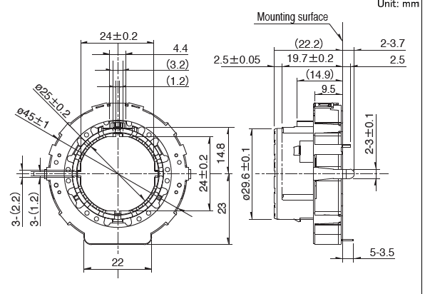 带有LED照光的45mm型,最适合于种种整机把手设计的带有LED照光的可变电位器。