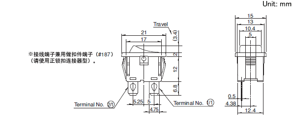 对应10A 250V AC型装置简单的按入式方法的小型·高容量型。