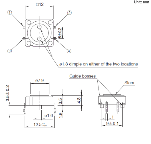 12x12x12mm 12mm方型(按入式)具有稳定操作感的连接式轴感和宁静面轴杆。