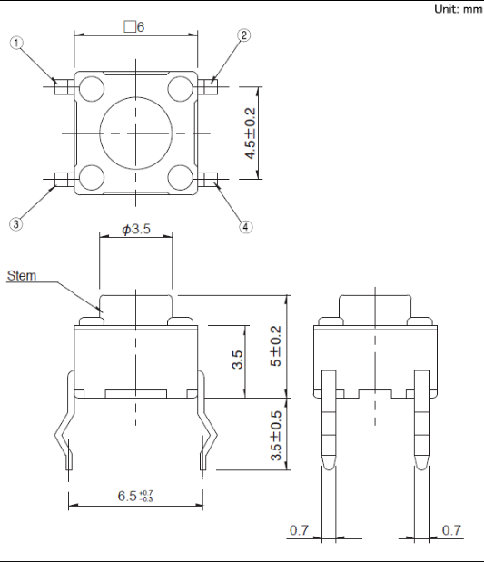 6x6x5mm 6mm方型(按入式) 易使用且有富厚的产品种类而受到好评的6mm方型。