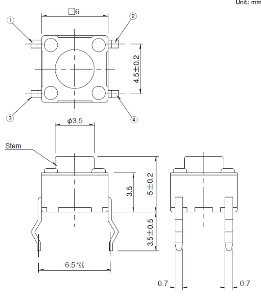 6x6x5mm 6mm方型(按入式) 易使用且有富厚的产品种类而受到好评的6mm方型。