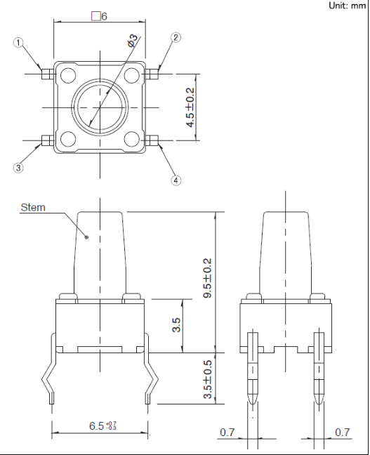 6x6x9.5mm 6mm方型(按入式) 易使用且有富厚的产品种类而受到好评的6mm方型。