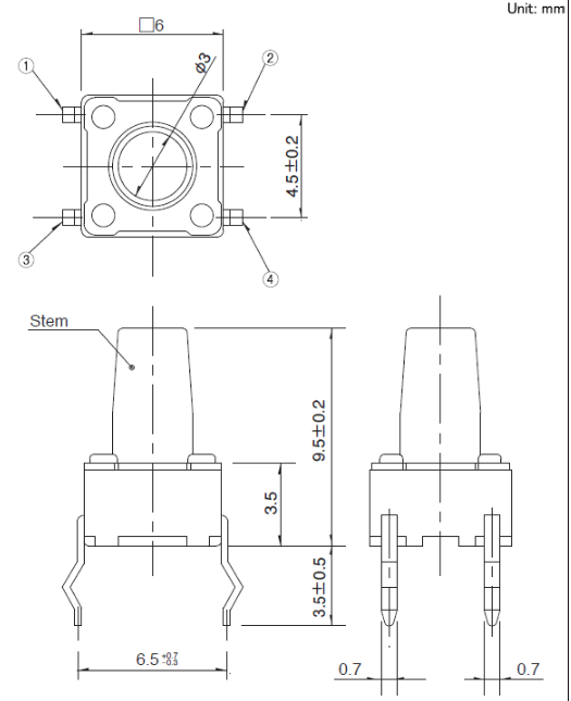 6x6x9.5mm 6mm方型(按入式) 易使用且有富厚的产品种类而受到好评的6mm方型。