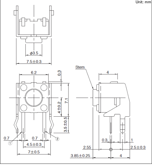 按钮长度: l=3.85mm
