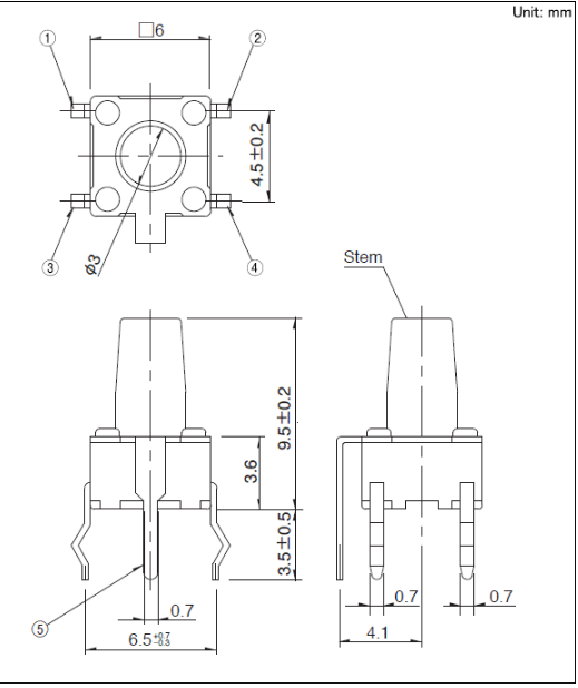 6x6x9.5mm 6mm方型(按入式) 易使用且有富厚的产品种类而受到好评的6mm方型。