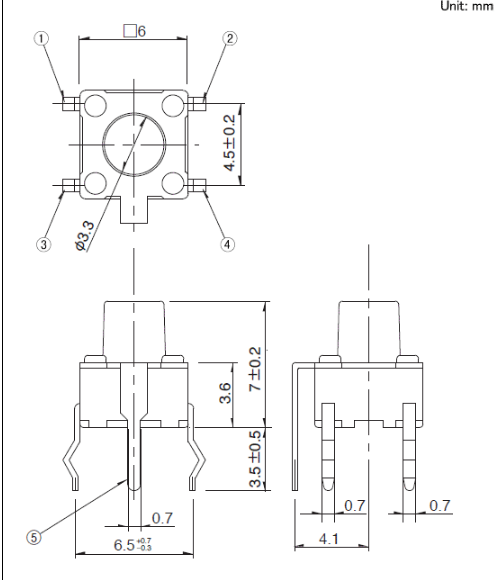 6x6x7mm 6mm方型(按入式) 易使用且有富厚的产品种类而受到好评的6mm方型。