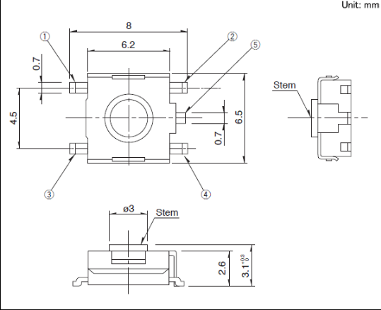 6.2x6.5x3.1mm 6.2×6.5mm型(外貌贴装) 全高3.1mm, 带有接地端子的外貌贴装类型?