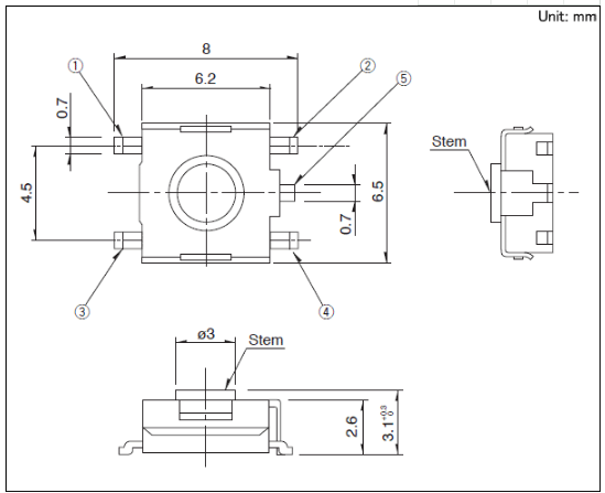 6.2x6.5x3.1mm 6.2×6.5mm型(外貌贴装) 全高3.1mm, 带有接地端子的外貌贴装类型?