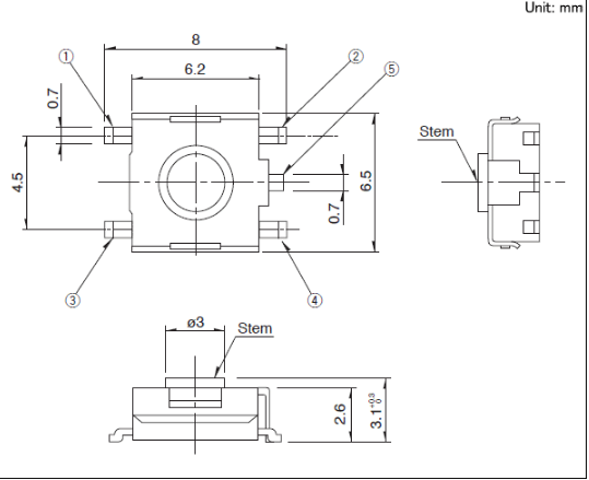 6.2x6.5x3.1mm 6.2×6.5mm型(外貌贴装) 全高3.1mm, 带有接地端子的外貌贴装类型?
