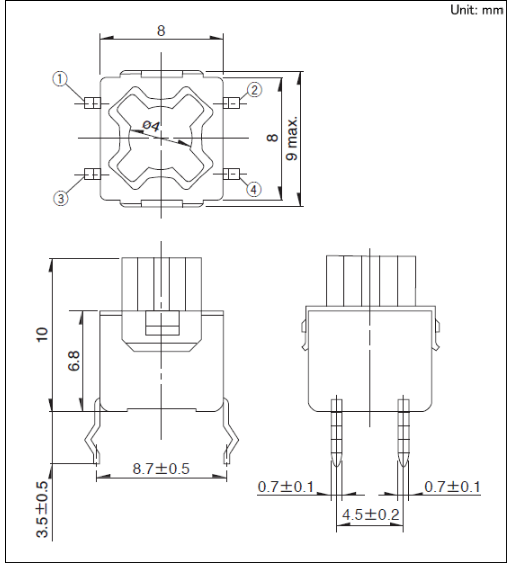 8x9x10mm 8×9mm长行程·重行动力(按入式) 通过行程和重行动力避免误操作的,8×9mm。