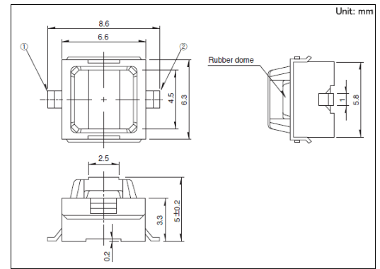 6.6x6.3x5mm 6.6×6.3mm重行动力型(外貌贴装) 通过薄型化和重行动力, 最适合于汽车用组件的外貌贴装型?
