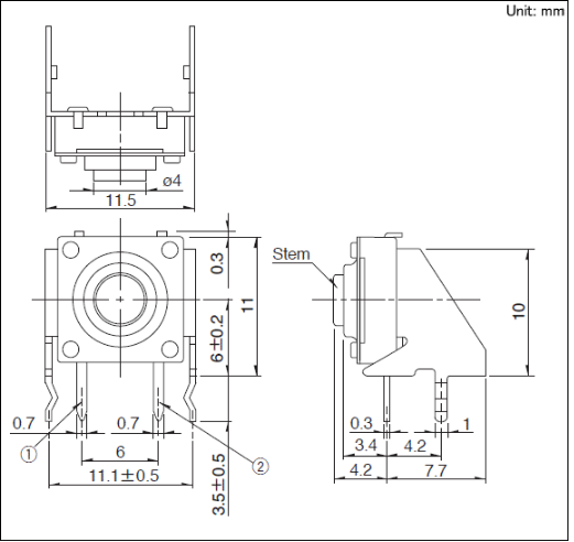 10mm方型防水型(按入式) 实现良好的防水·防尘结构, 适用于有防水要求家电产品。