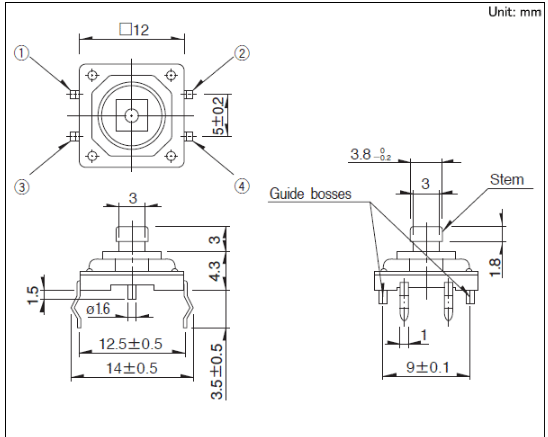 12mm方型长寿命型(按入式) 接纳了独吞的防尘结构和高可靠金属接点的长寿命型。