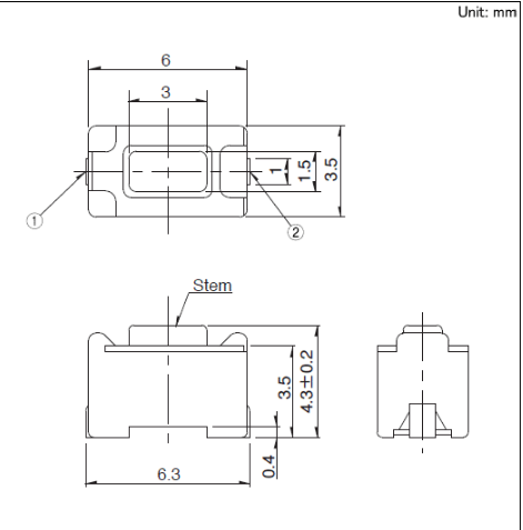 6x3.5x4.3mm 6¡Á3.5mmСÐÍ(ÍâòÌù×°) ÍâòÌù×°, ³¤½Å(4.3mm, 5.0mm¸ß¶È)ÐÍ?