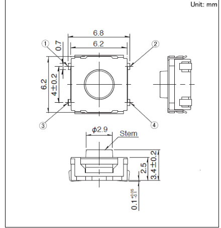 6.2x6.2x3.4mm 6.2mm·½ÐÍÖÐÐгÌÐÍ(ÍâòÌù×°) ÓÉÓÚ½ÓÄÉÁËÏ𽺰´Å¥, ʵÏÖÁË0.3?0.55mmµÄ³¬ÐгÌ?