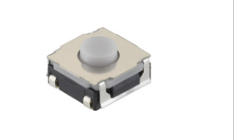 6.2x6.2x3.4mm 6.2mm方型中行程型(外貌贴装) 由于接纳了橡胶按钮, 实现了0.3?0.55mm的超行程?