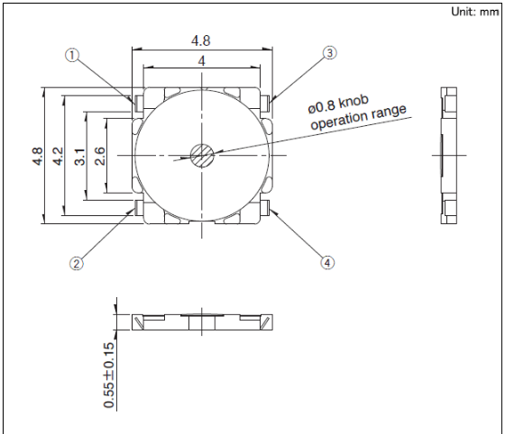 4.8x4.8x0.55mm 4.8mm方型薄型(外貌贴装) 高0.55mm的小型?薄型款。