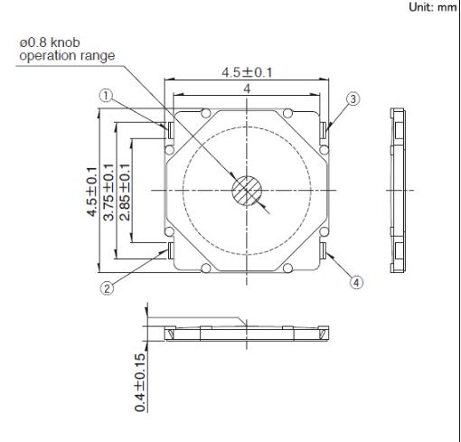 4.5x4.5x0.4mm 4.5mm方型薄型(外貌贴装) 高0.4mm的小型?薄型款。