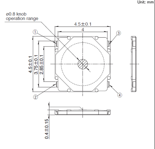 4.5x4.5x0.4mm 4.5mm方型薄型(外貌贴装) 高0.4mm的小型?薄型款。