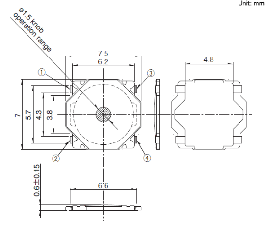 7.5x7x0.6mm 7.5×7.0mm薄型长寿命(外貌贴装)薄型0.6mm·长寿命500万次。