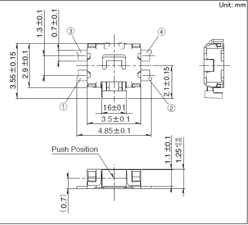3.5x3.55x1.25mm 3.5¡Á3.55mm±¡ÐÍSide PushÐÍ(ÍâòÌù×°) ʵÏֽϸߵĺ¸½ÓÇ¿¶ÈºÍСÐÍ»¯¡¢±¡ÐÍ»¯£¨1.25mm£©¡£