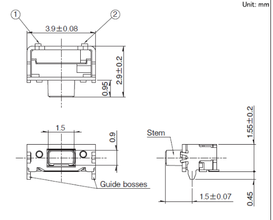 3.9x2.9x1.55mm 3.9¡Á2.9mm Side PushÐÍ£¨ÍâòÌù×°£©Í¨¹ýÍâ¿òº¸½ÓµÄ·½·¨£¬ÊµÏÖÁ˸ߺ¸½ÓÇ¿¶È¡£