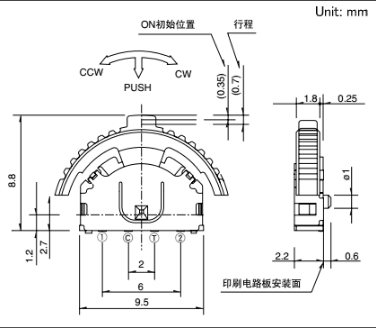 操作杆和按动操作型开关 投影面积仅50%(与本公司原有产品相比)的小型。