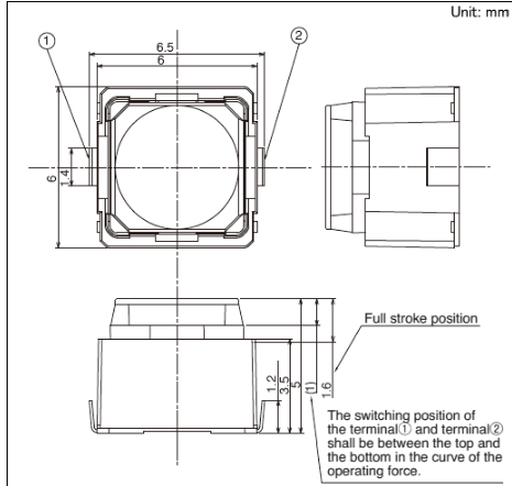 6x6x5mm 外貌贴装型具有橡胶触感的滑动触点开关。