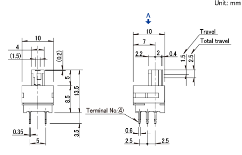 10x10x8.5mm 1.5mm行程立式 具有两种旋钮形状的立式。